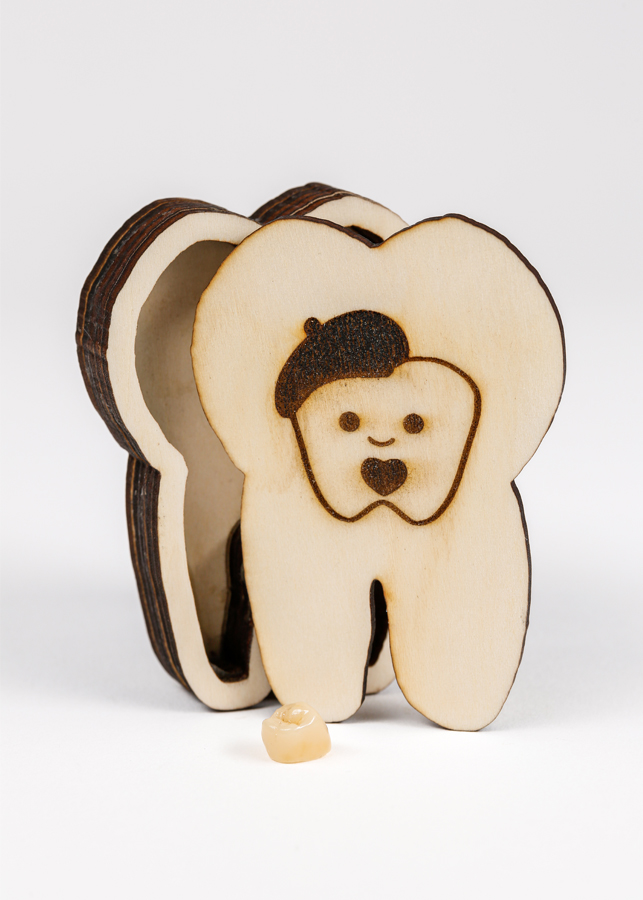 Je suis la boîte à dents, je conserve précieusement les dents de lait des enfants.